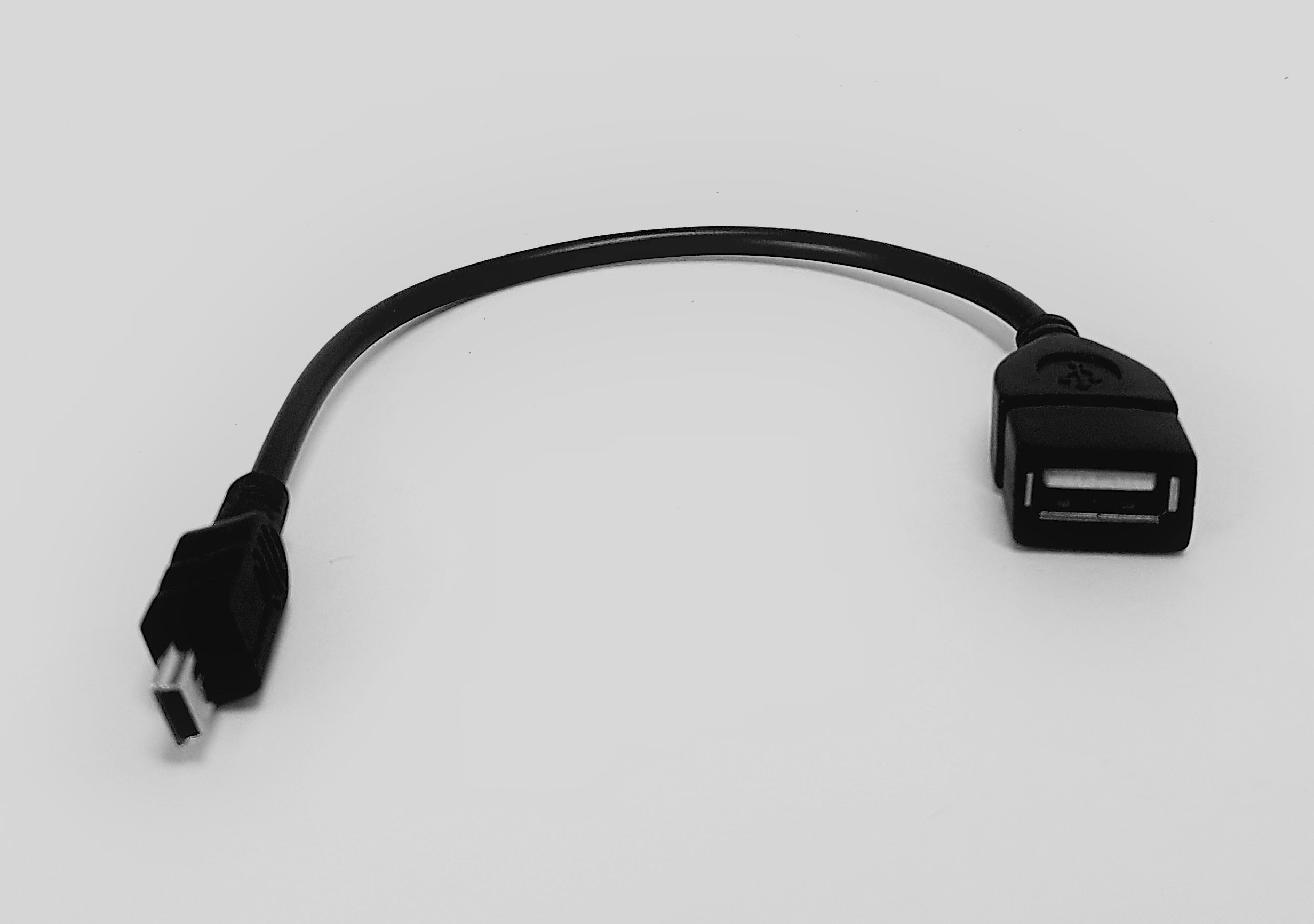 A short USB On-The-Go (OTG) adaptor cable that allows you to connect a standard USB device to a Mini-USB port.